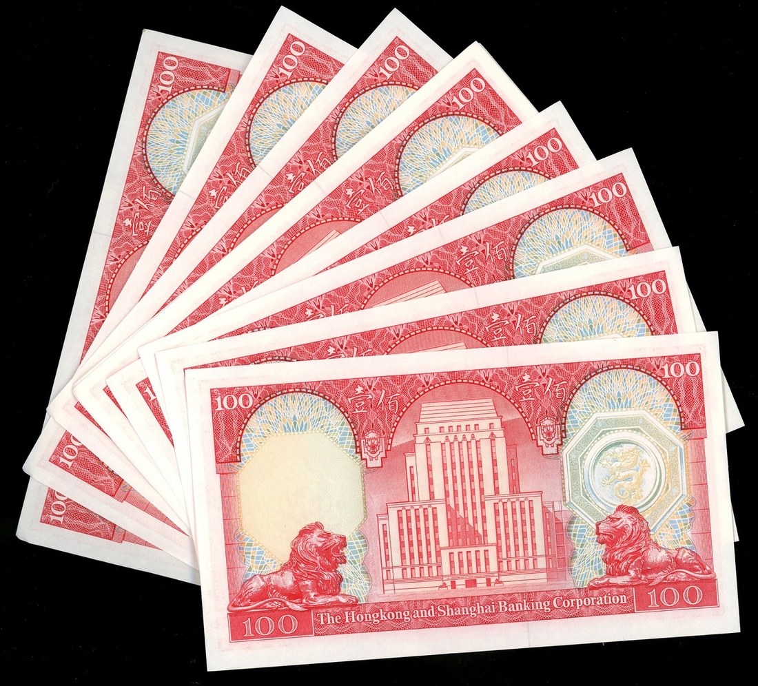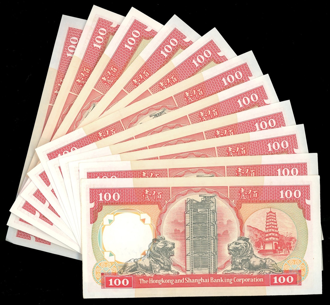 The Hongkong and Shanghai Banking Corporation, a group of 44x $100, 31.3.1983 and 1.1.1992, consecutive groups of serial number YA 344301-311, PR137468-500 (Pick 187d, 198d), the 1983 notes with a 3-4cm wrinkle at centre bottom, otherwise all uncirculated, viewing recommended (44).