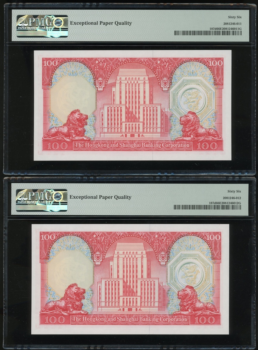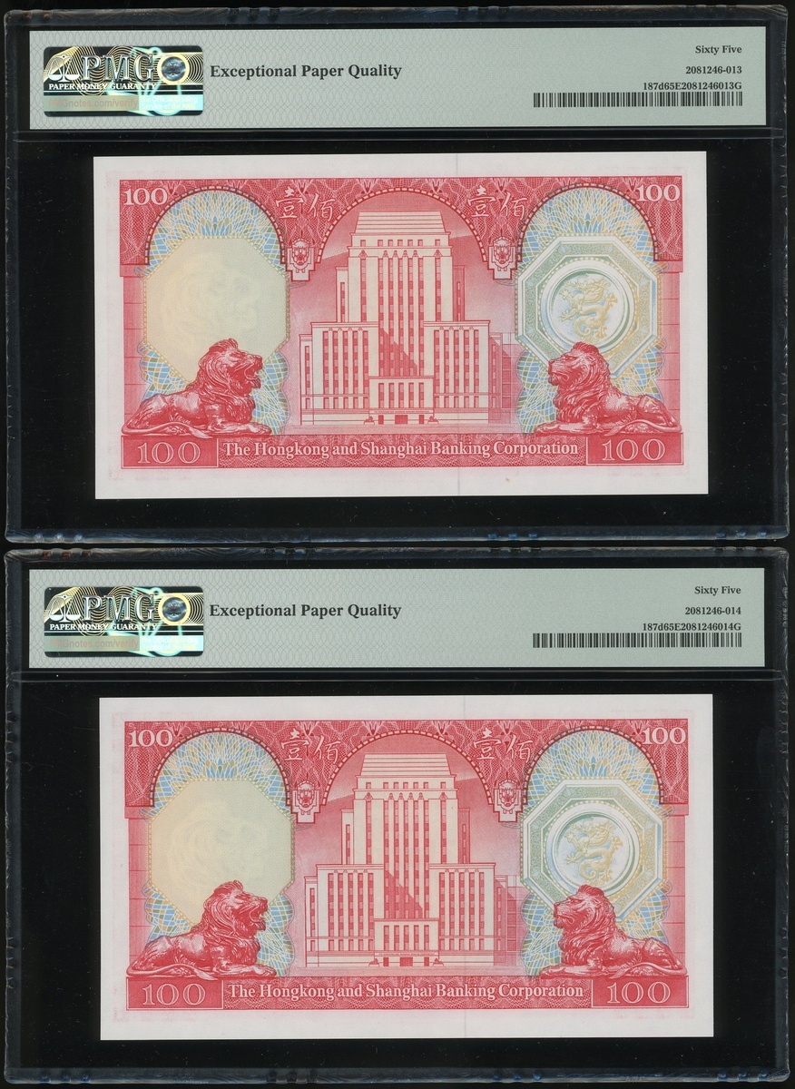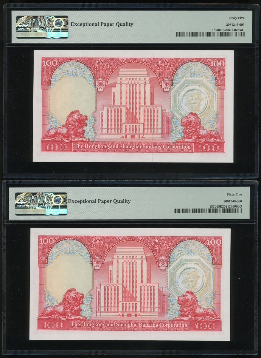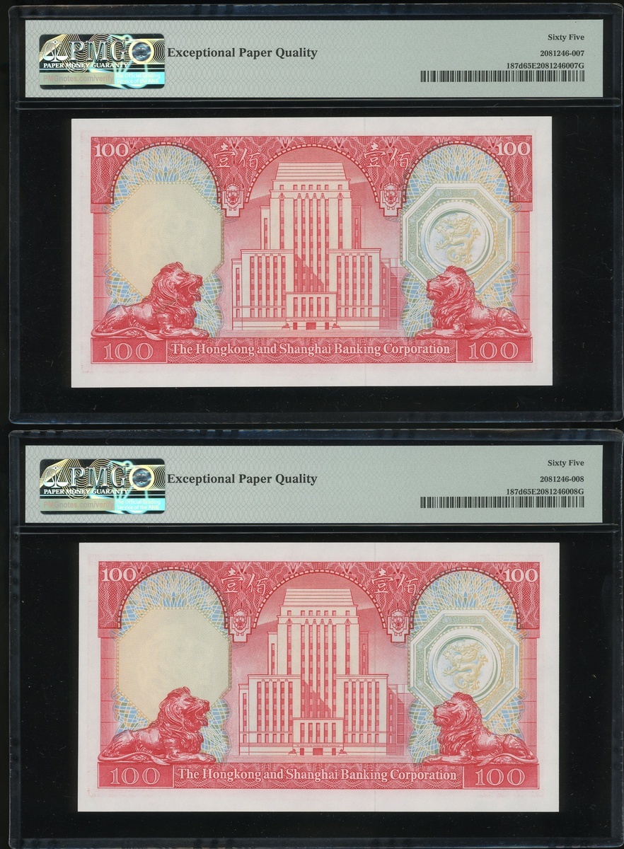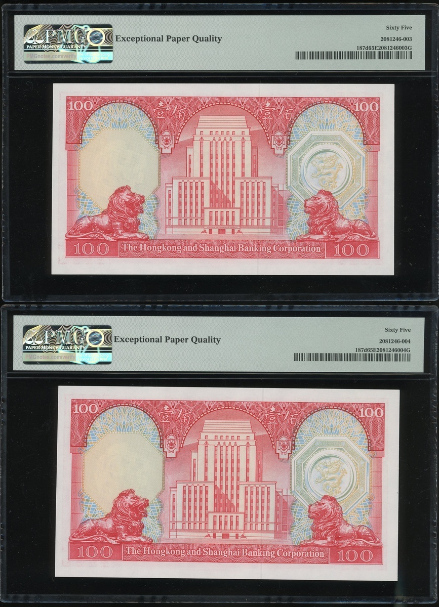 1982年香港上海匯豐銀行100元二十枚連號,編號VP903701-903720,均PMG65EPQ(20)