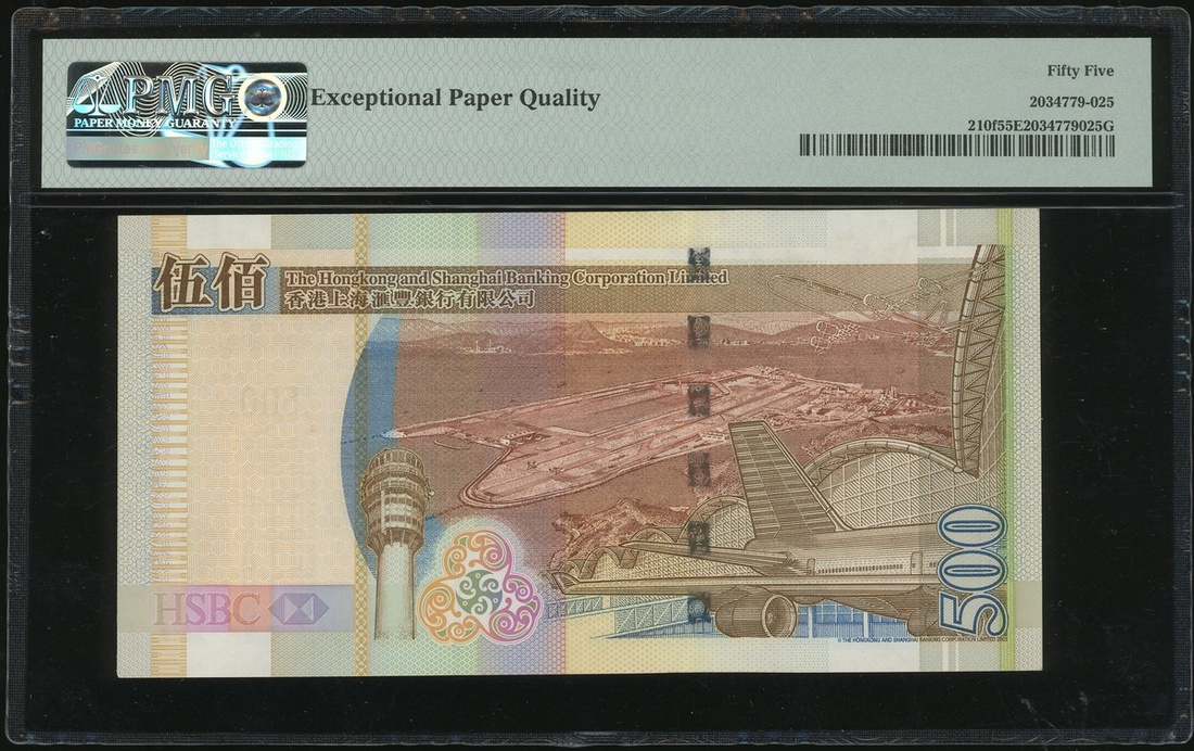 2009年香港上海匯豐銀行500元,幸運號LQ555555,PMG 65EPQ