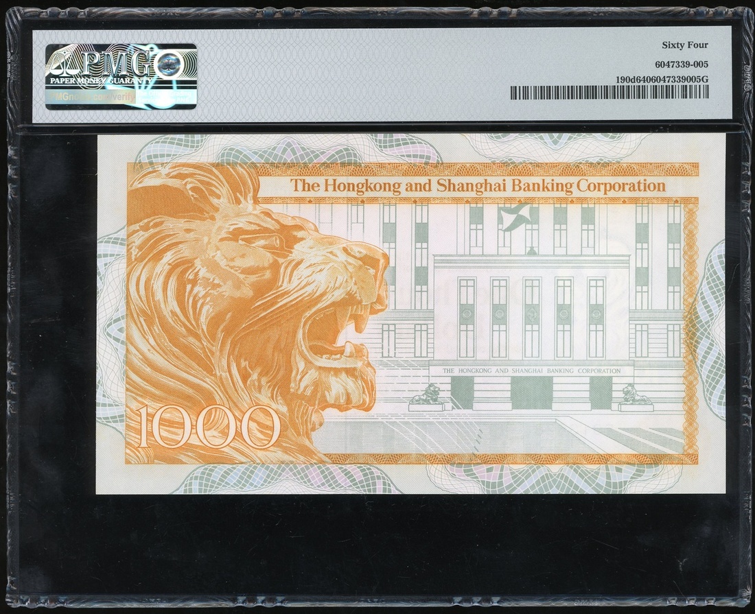 The Hongkong and Shanghai Banking Corporation, $1000, 31.3.1981, serial number F913628, (Pick 190d), PMG 64 Choice Uncirculated