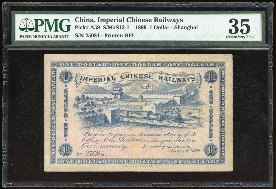 Imperial Chinese Railways, $1, 1899, Shanghai, serial number 25084, (Pick A59), PMG 35, choice very fine, minor restoration.