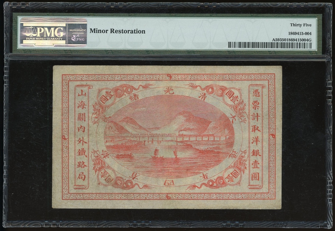 1899年山海關內外鐵路局洋銀壹圓,上海地名,編號25084,PMG 35,輕微修復