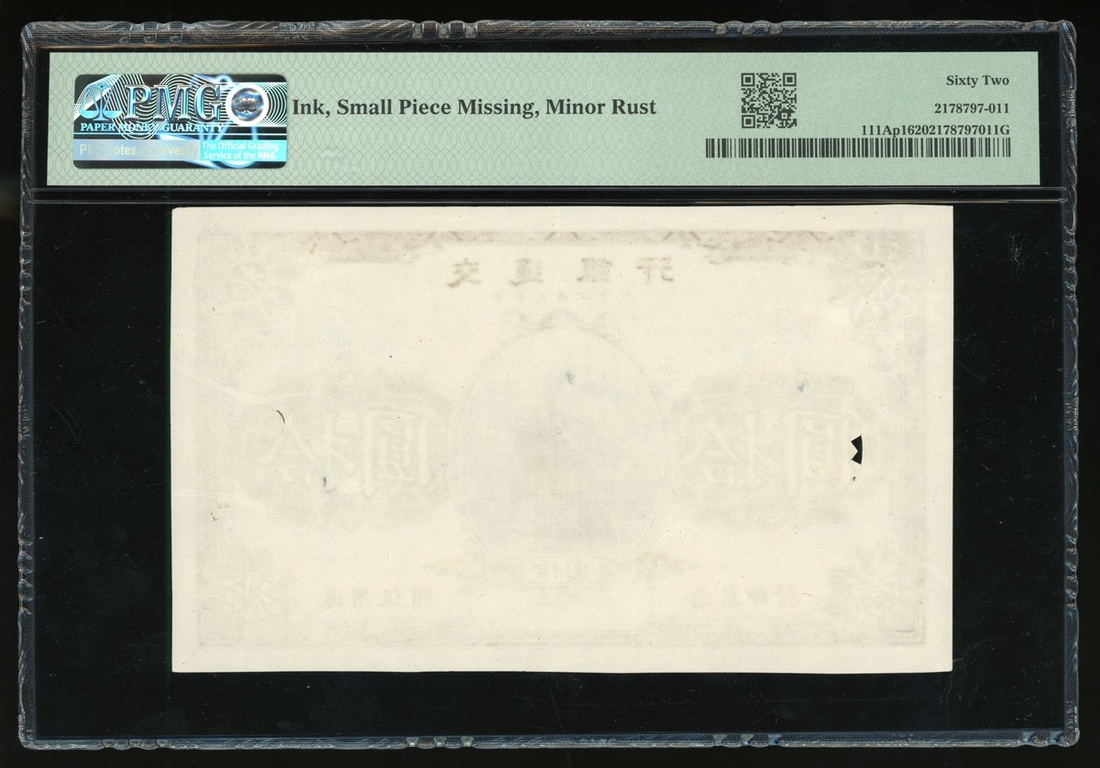 (Pick 111As), PMG 62 Uncirculated (ink, small piece missing, minor rust). A scarce proof type with no serial numbers or signatures