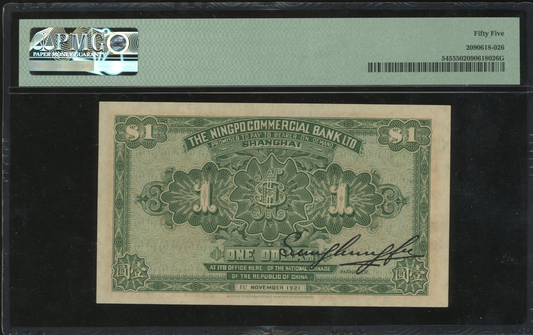 Ningpo Commercial Bank Limited, China, 1 dollar, Shanghai, Year 10(1921), sreial number R066153P, (Pick 545), PMG 55 About Uncirculated, the second highest grade in PMG Census