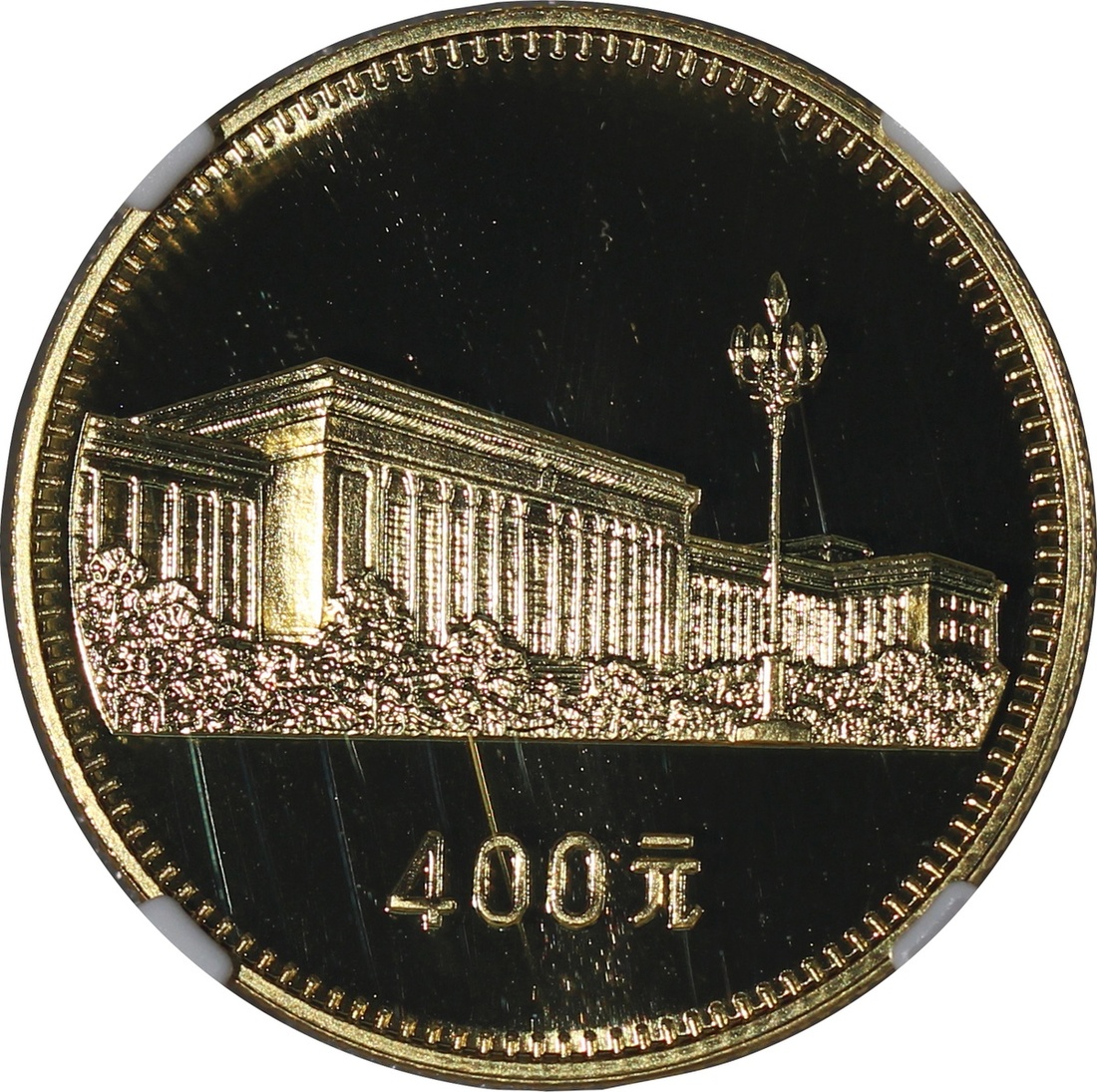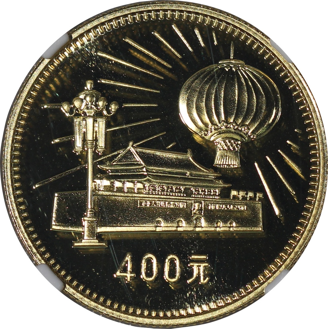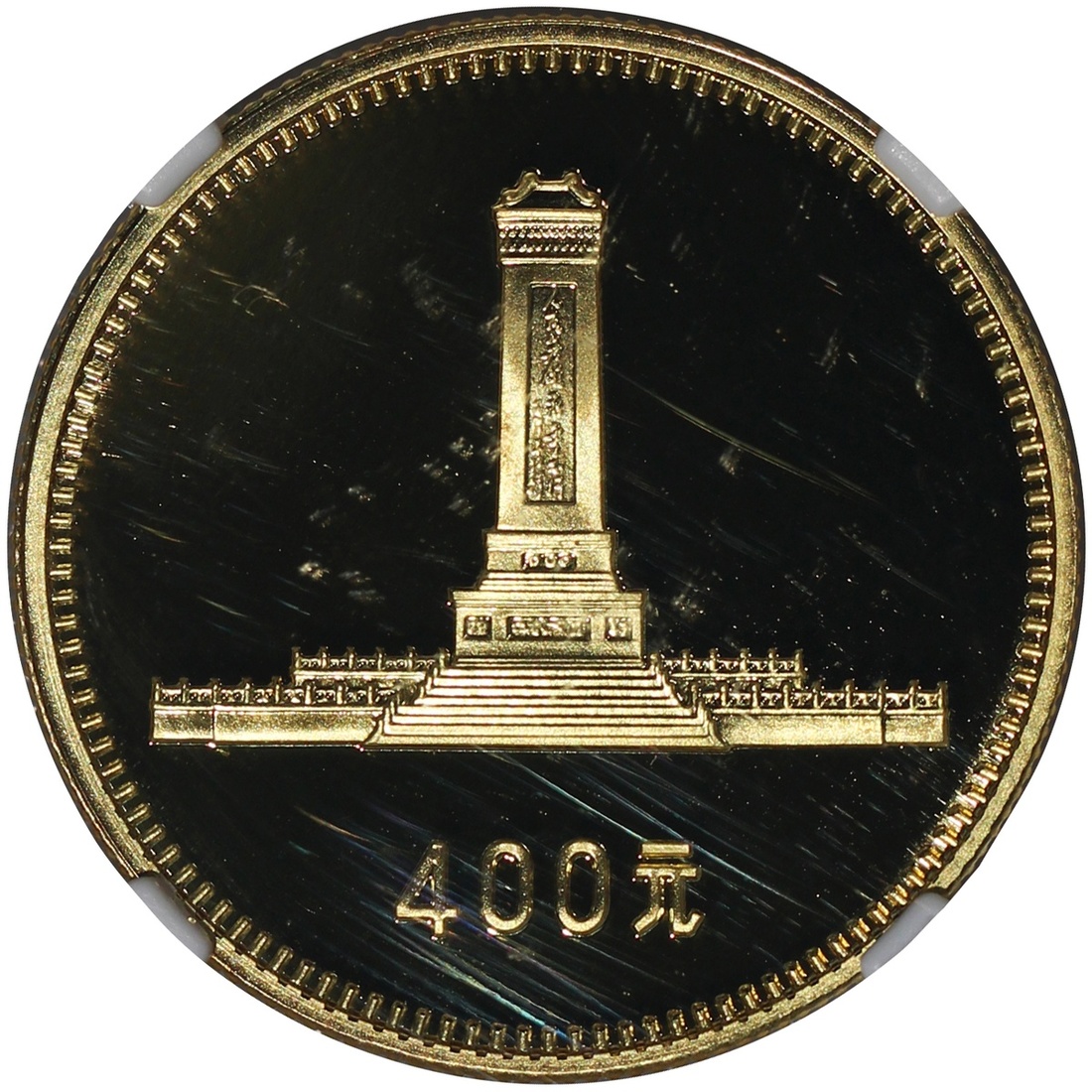 People's Republic of China, a proof set of 4x gold 400 yuan, 1979, commemorative set in Celebration of the Founding of the People's Republic of China, depicting 'People's Heros Monument', 'Great Hall of the People', 'Mao Zedong Memorial' and 'Tiananmen Square' respectively, each coin contains 1/2 ounce of 22K pure gold, total AGW of 2oz" with original box and certificate, number 21534, NGC PF69 Cameo and 3x PF70 Cameo.(4) Cert.# 6473456-001-4