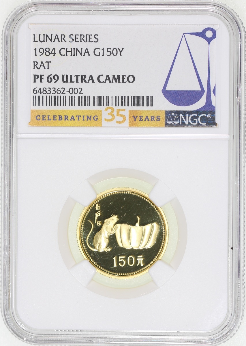 People's Republic of China, gold 150 yuan, 1984, Year of Rat, NGC PF 69 Ultra Cameo, very rare. Cert.# 6483362-002