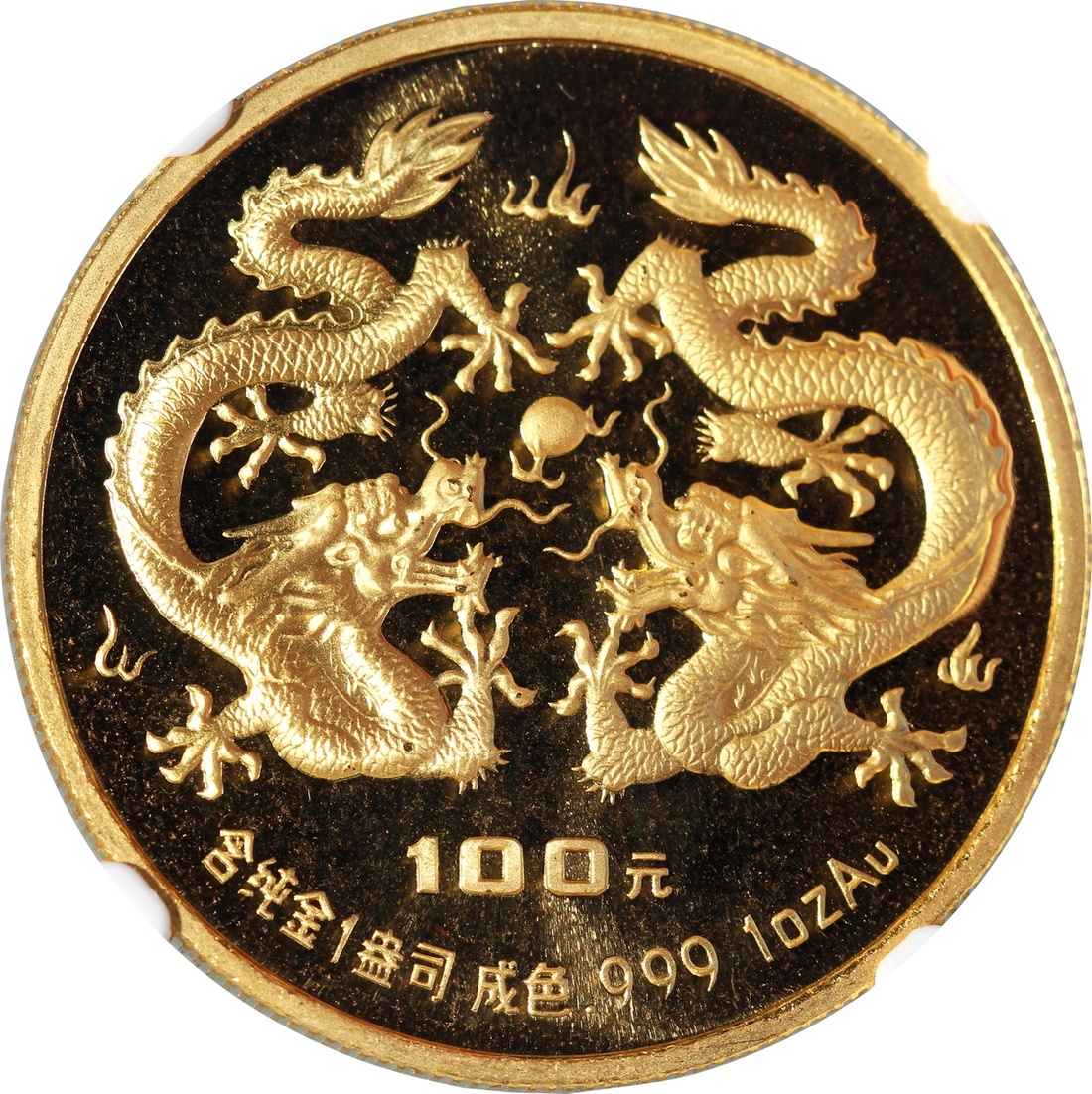 People's Republic of China, gold 100 yuan, 1988, Lunar series, Year of Dragon, with original box, NGC PF69 Ultra Cameo. Cert.# 6473456-006