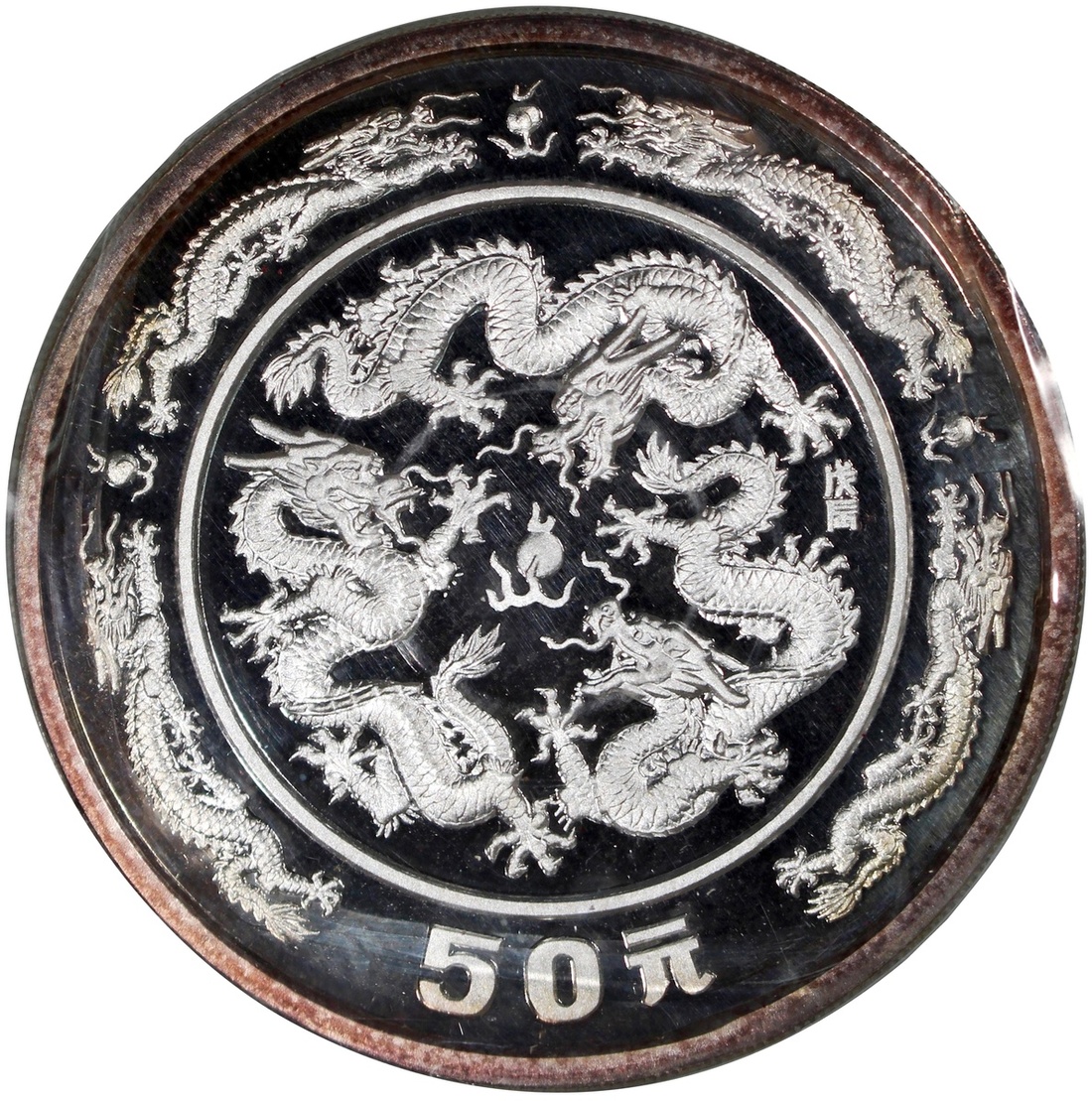 People's Republic of China, silver proof 50 yuan, 1988, Year of the Dragon, ASW 5oz, fleur de coin, with original packaging, box and certificate of issue, mintage of 5014 pieces only