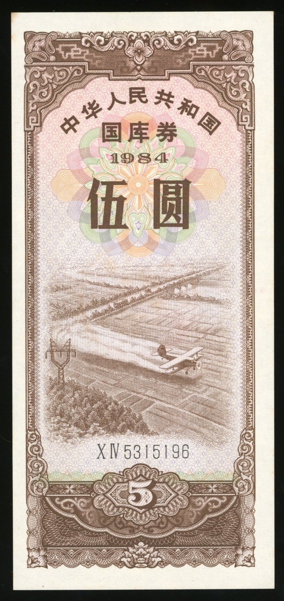 People's Republic of China State Treasury Note, 5 yuan, 1984, serial number 5315196, uncirculated