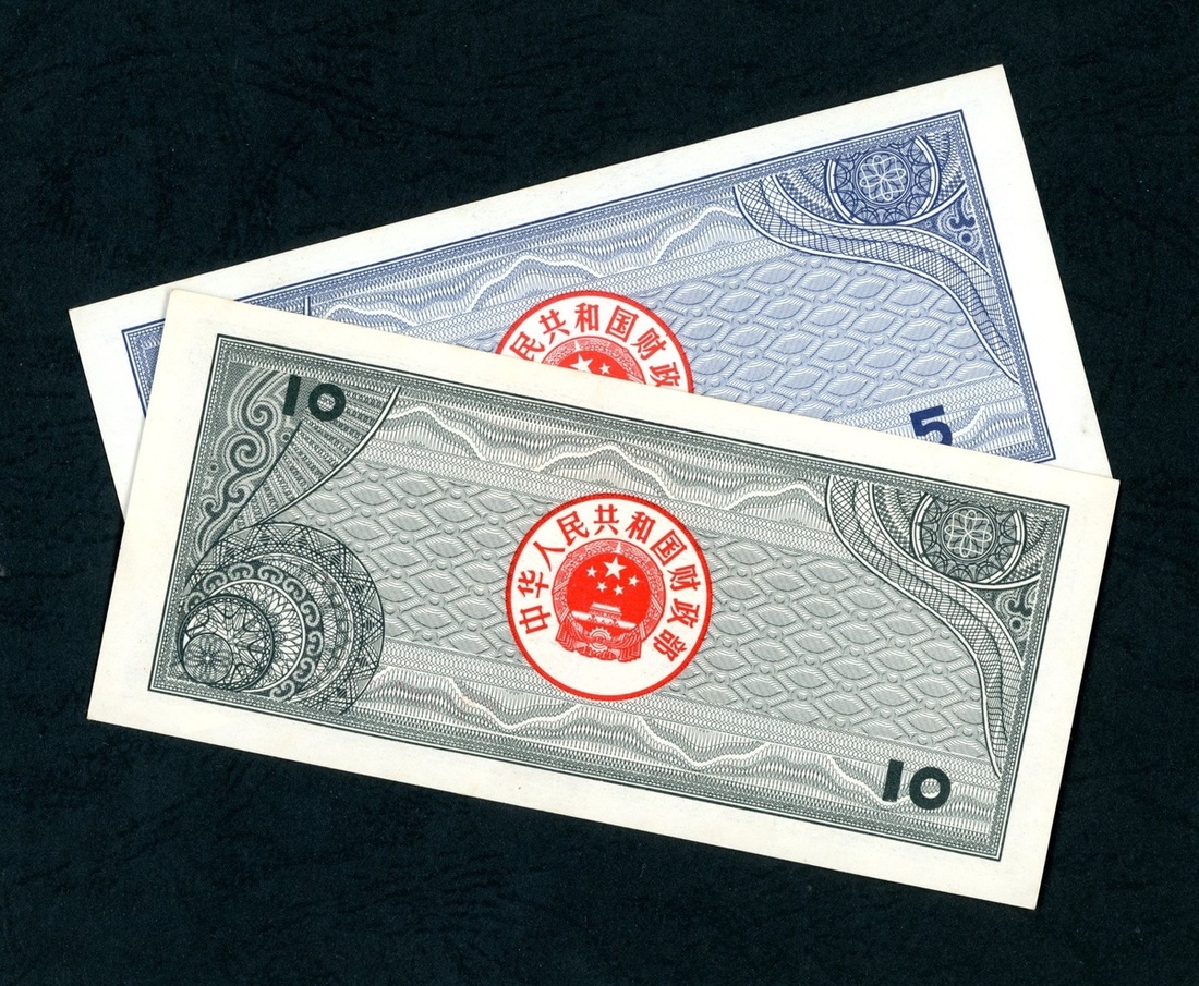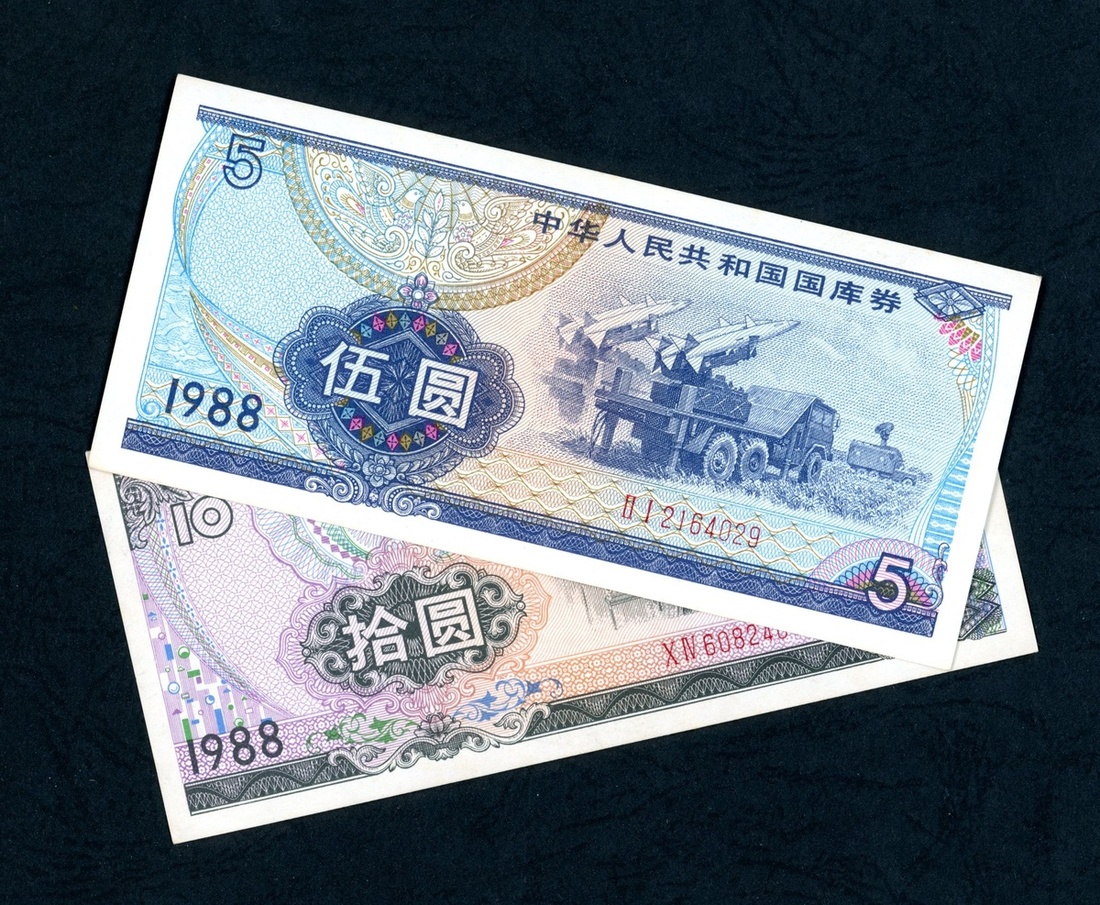 People's Republic of China State Treasury Note, 5 and 10 yuan, 1988, uncirculated (2)