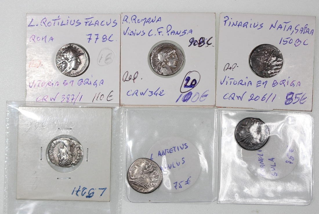 公元前150年至133年古羅馬錢幣6枚一組,保存完好,F至EF,帶深調包漿