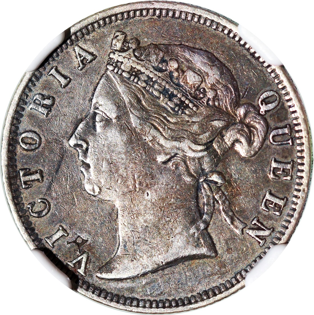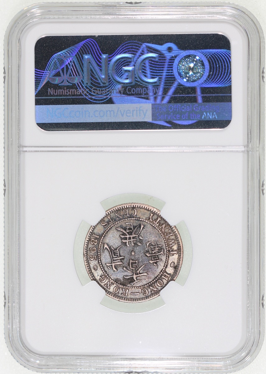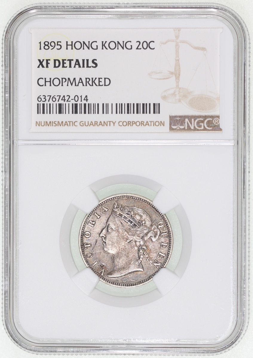 Hong Kong, silver 20 cents, 1895, Victoria on obverse, toned, NGC XF Details, chopmarked. Cert.#6376742-014