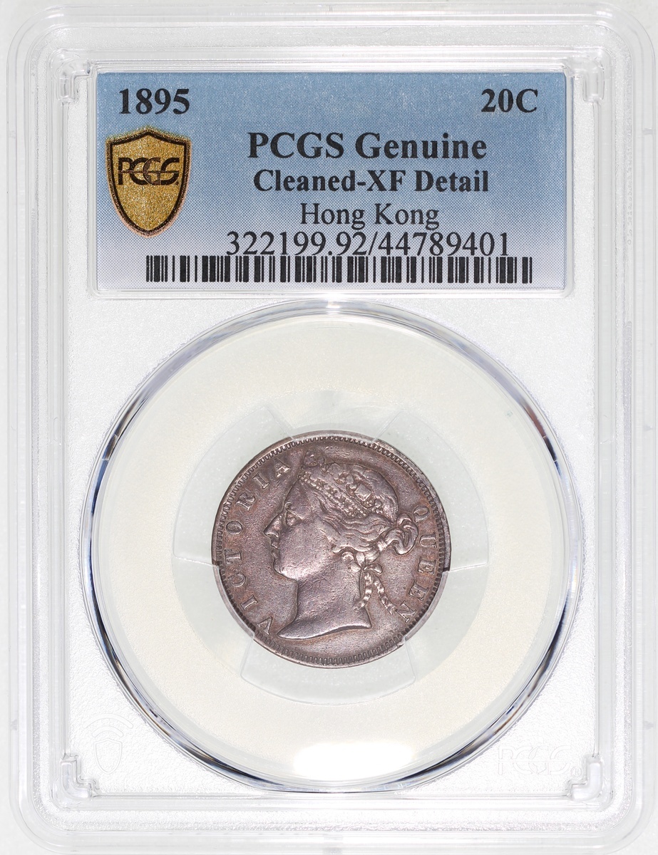 Hong Kong, 20 cents, 1895, PCGS Genuine (Cleaned-XF Detail) #44789401