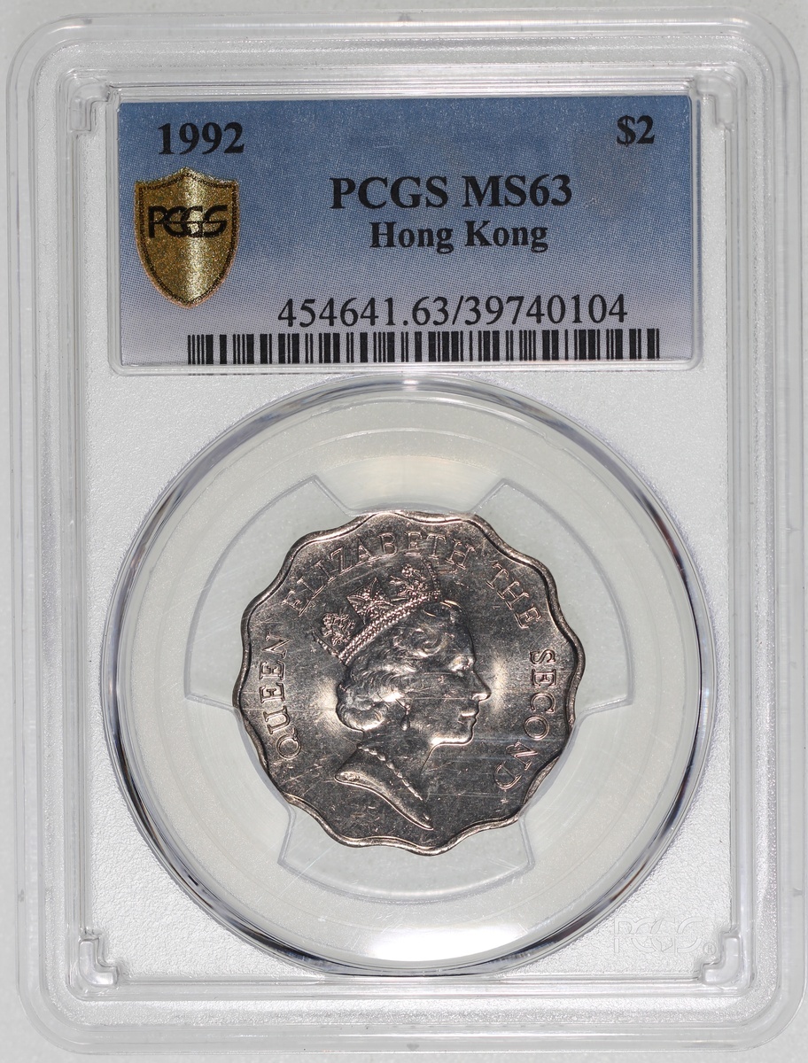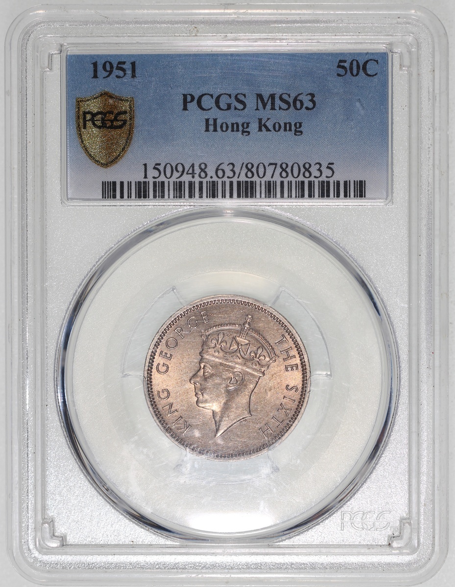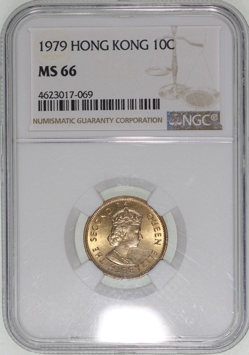 Hong Kong, a lot of copper nickel 5 cents, 1972-H, 10 cents, 1979, 50 cents, 1951 and $2, 1992, the 10 cents NGC MS66, the others PCGS MS66, MS63, MS63 respectively.(4)
