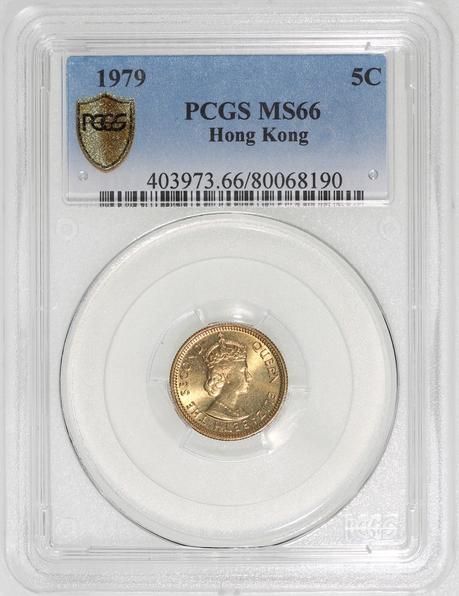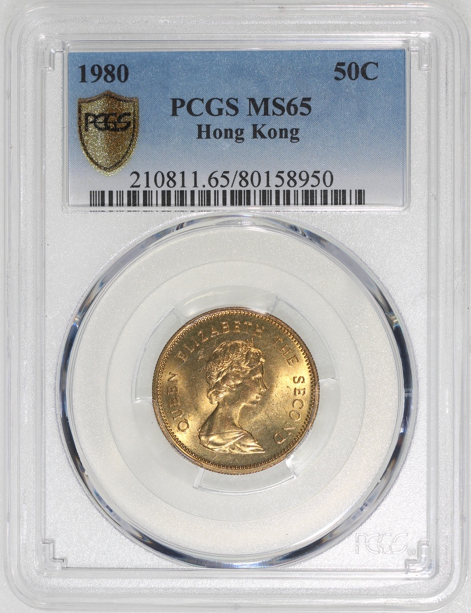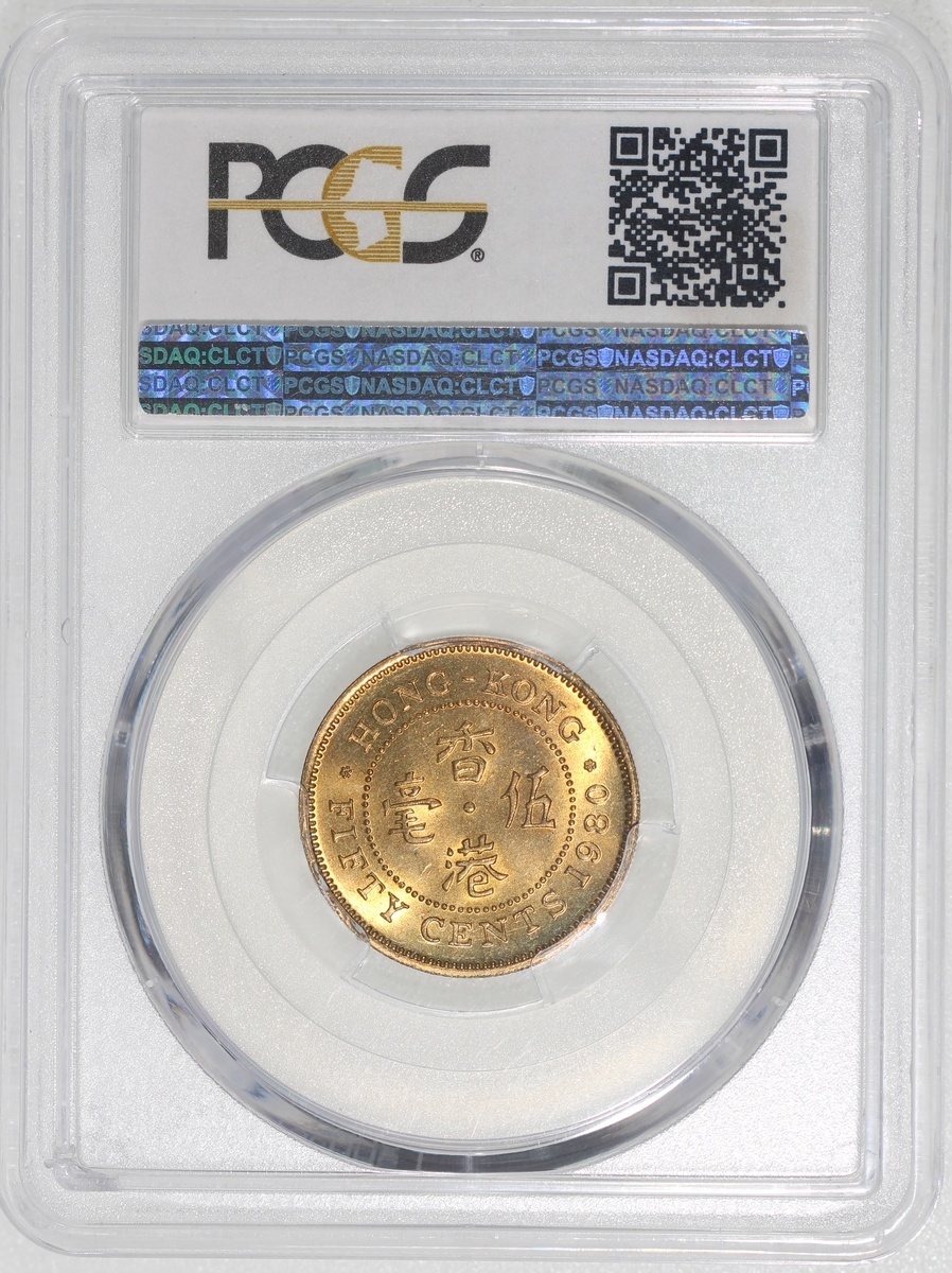 Hong Kong, 5 cents 1979, 50 cents 1980, PCGS MS66 #80068190, PCGS MS65 #80158950 (2)