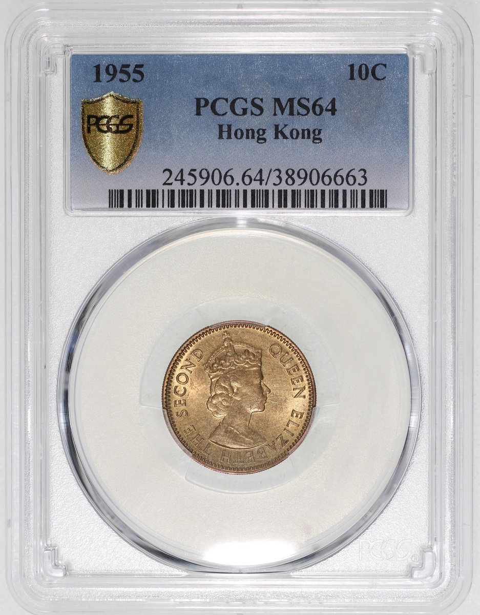 Hong Kong, a group of 4x 10 cents, 1955, 1960-H, 1965-KN and 1968-H, 1955 graded PCGS MS64, the rest MS65, #38906663, #38906665, #39230963 and #39250968 (4).