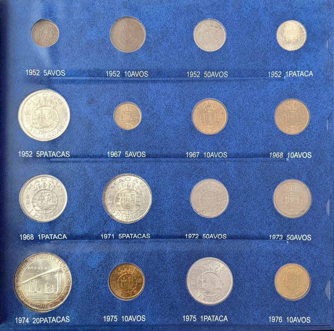 Macau, Coin's of Macau, a set of 49 coins, 5 avos to 20 patacas, 1952-1998, well preserved, about uncirculated or so, several with toning, viewing recommended (1 set 49 coins).