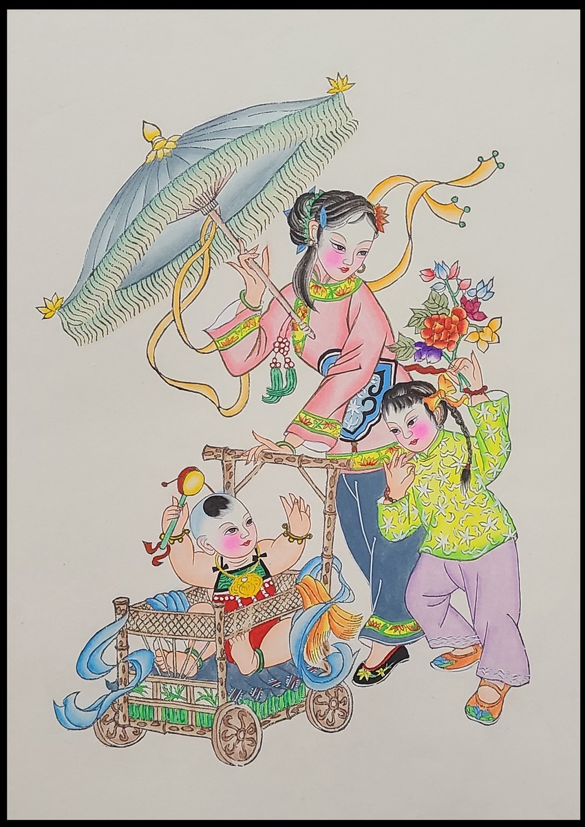 1970-80s Seventeen pieces of Chinese New Year woodcut coloring paintings, mounted. Painting size: 23.5x31.5cm