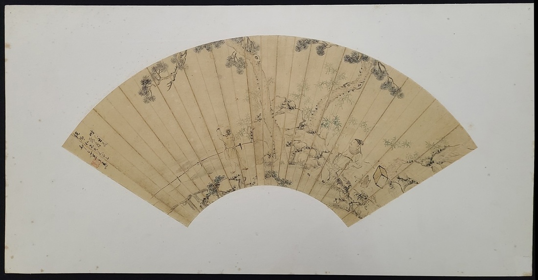 Wang Su (1794-1877) "The Old Man and Boy Under the Pine Tree" painted on fan. Painted in 1829. Painting size: 23x50cm