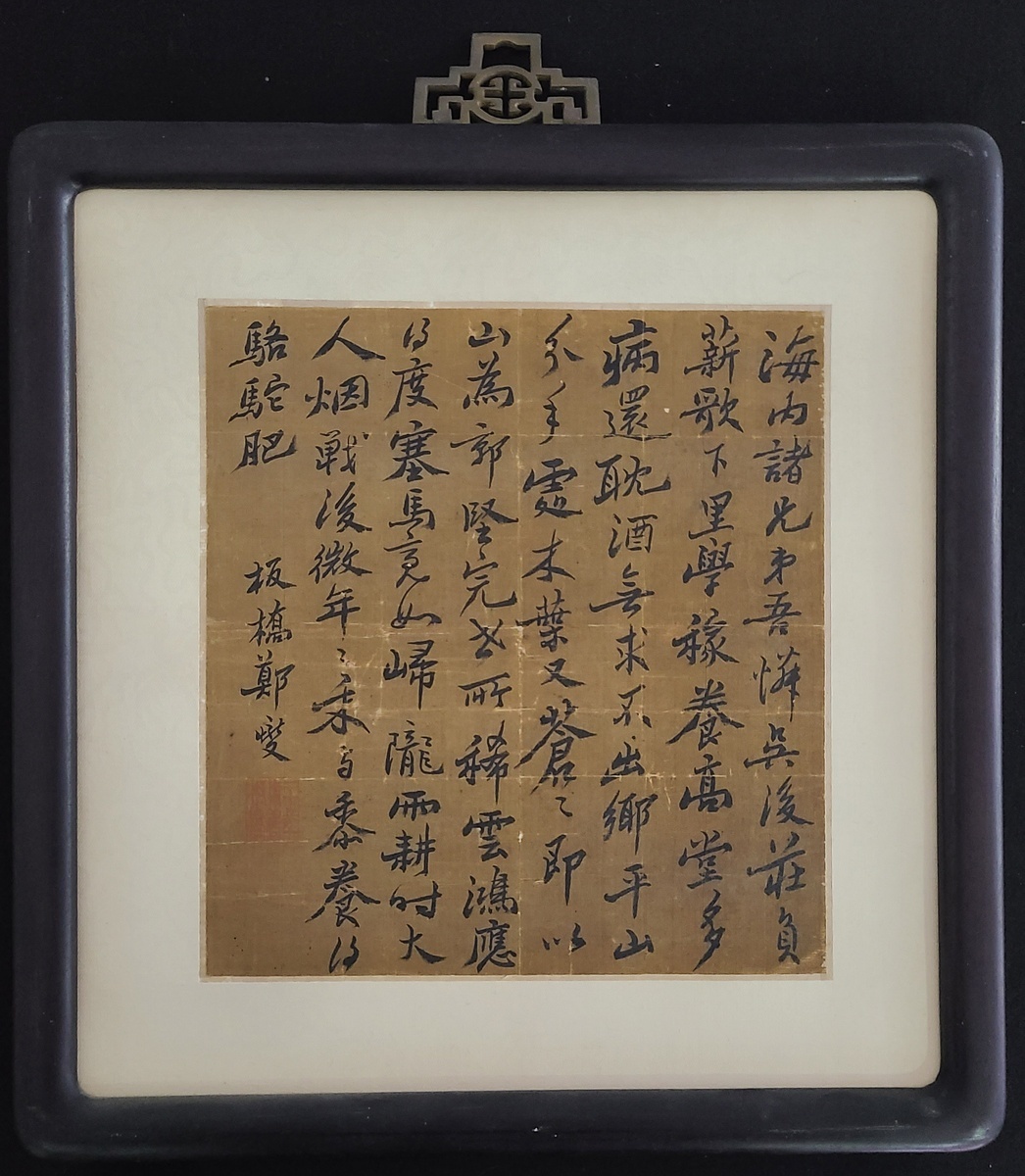 鄭燮 (1693-1765) 款行書帖, 絹本, 鏡心, 款款: 板橋鄭燮; 鈐印: 二十年前舊板橋 (朱文), 尺寸: 連紅木鏡框31x32.2cm