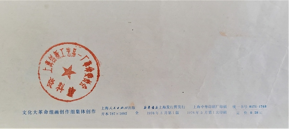 1971 (May) The first print of the Chinese Cultural Revolution political propaganda poster "The people of the world unite to defeat the American invaders and all their lackeys!" Published by Guangdong People's Publishing House, printed by Guangdong Xinhua Printing Factory, with holes in the fold. This is the original poster , not later reprinted. Size: 38.5x91cm
