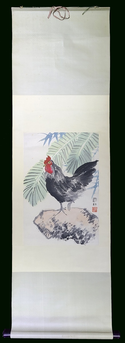 1980年代陳雨田 紙本設色水墨畫 "雄鷄圖" 立軸. 鈐印: 白文"陳雨田". 畫心尺寸: 46x68.5cm