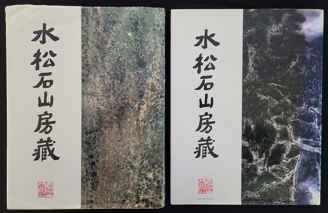 1983年莫士輝 (Hugh Moss) 著 "水松石山房藏畫 (The Experience of Art)" 畫册, 全册共245頁, 精選莫士輝的收藏中國畫作品數十幅. 全以彩色印刷. 另一冊1990年刋, 亦為水松石山房收藏的何懷碩"四時山水手卷" 複印畫册. 珍貴難得地書首有藏家的手跡, 两册皆為精装本. 畫册尺寸: 26x34cm (x2) 註: 莫士輝 (Hugh Moss) 為英國著名古董商及中國藝術收藏家, 收藏中國繪畫, 及藝術品精品甚多, 其堂號"水松石山房" 其來源是掛於其工作堂璧爐上的吳昌碩題"水松石山房" 的匾額.