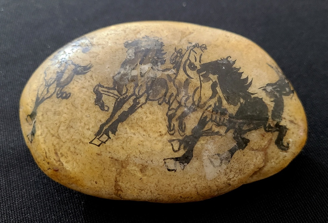 石繪一件, 石面上墨繪駿馬四匹. 尺寸:6x9cm
