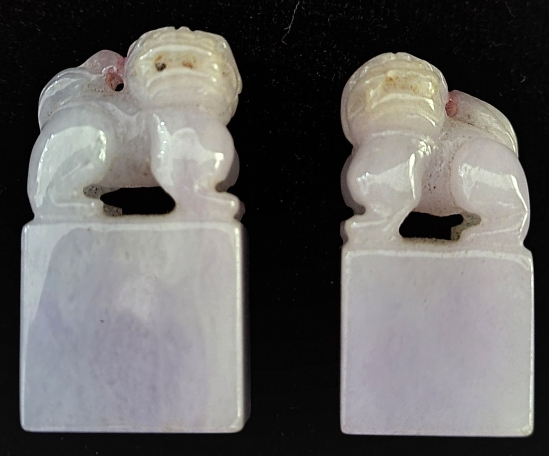 Purple jade carved lion seal. Size: 1.5x3cm (x2)