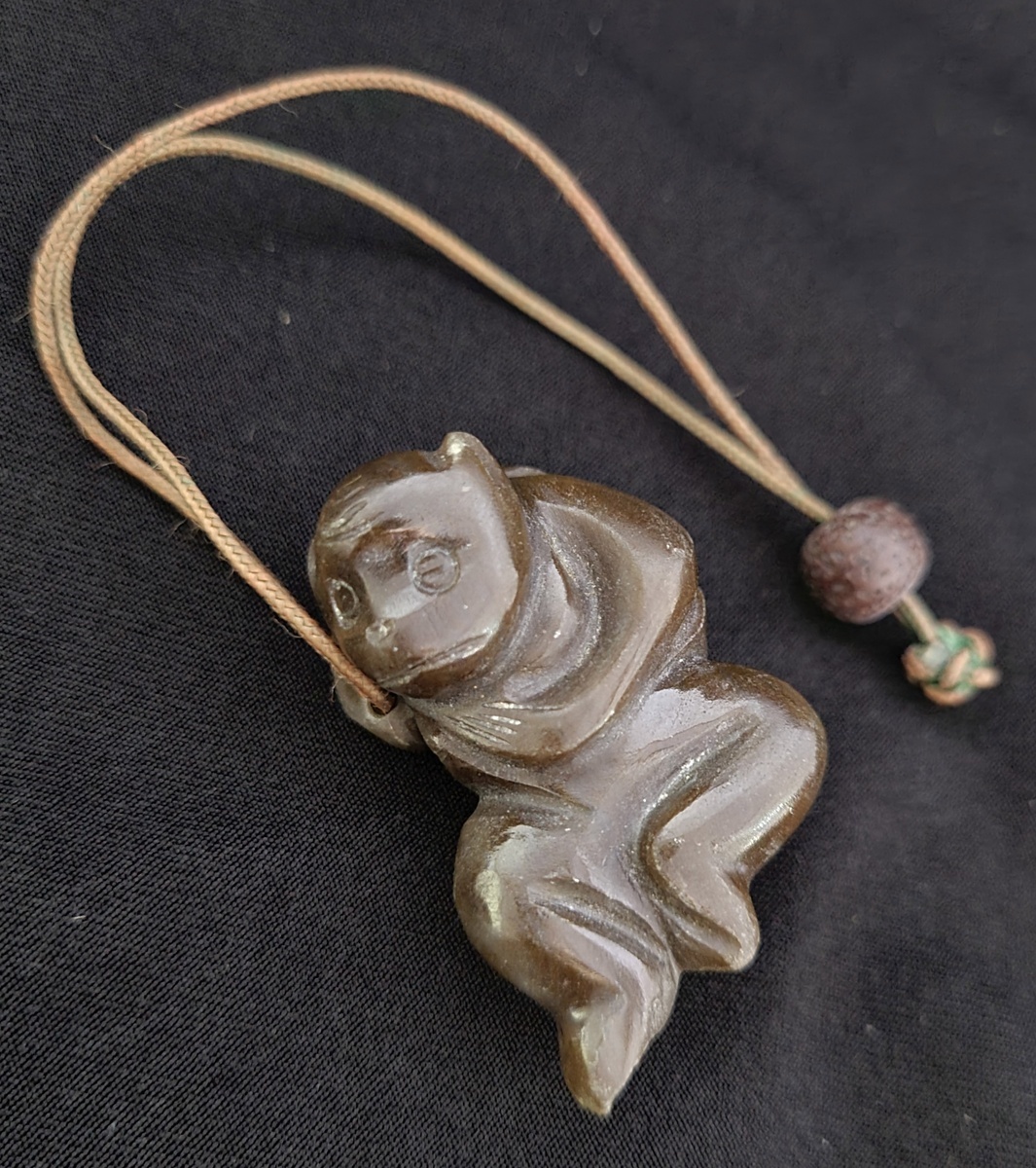 1900-1950年代猴子偷桃造型古玉吊墜; 2.5x4x1.6cm