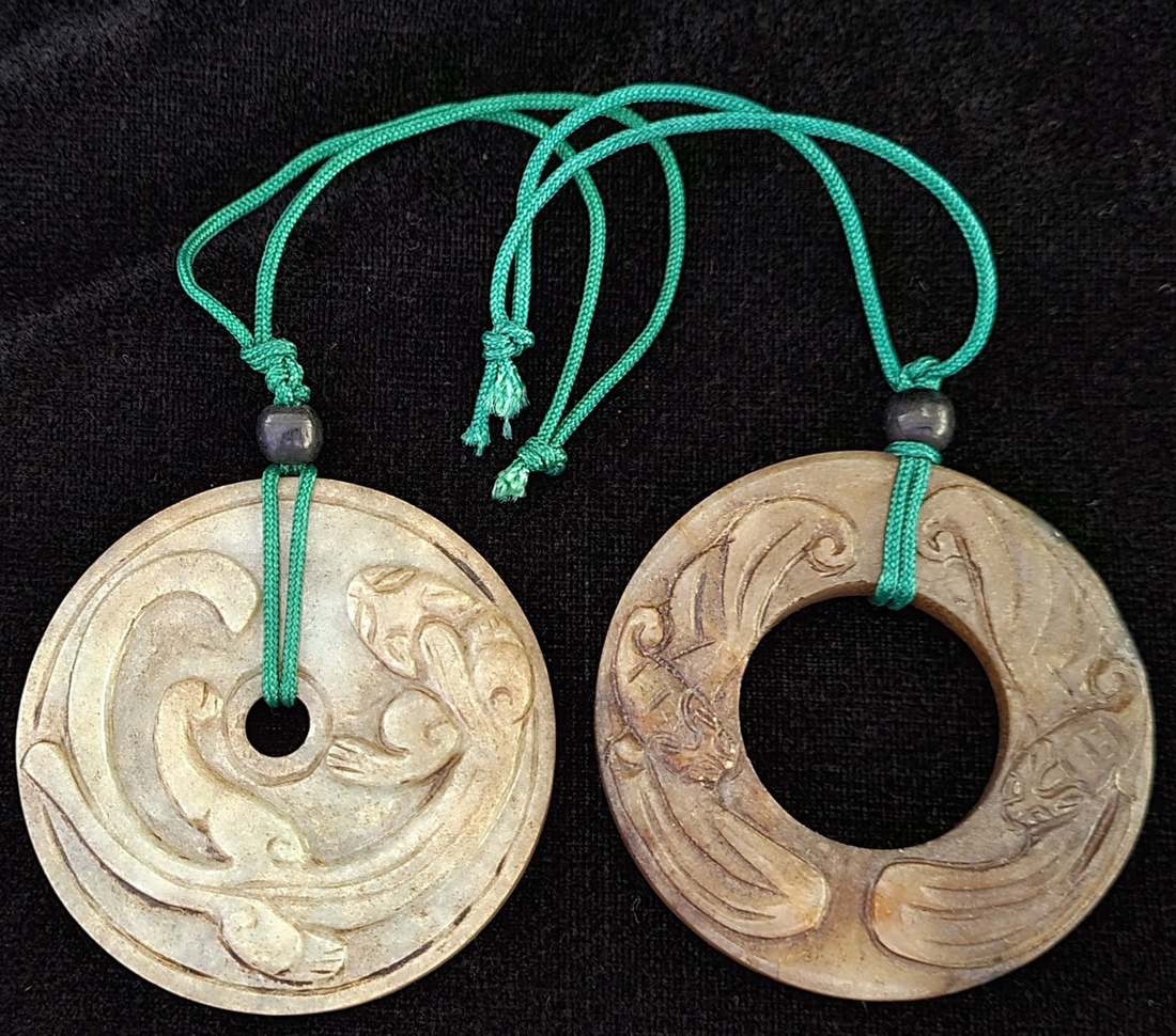 靈獸玉環及雙福玉環各一件. 尺寸:直徑5.5cm (x2)