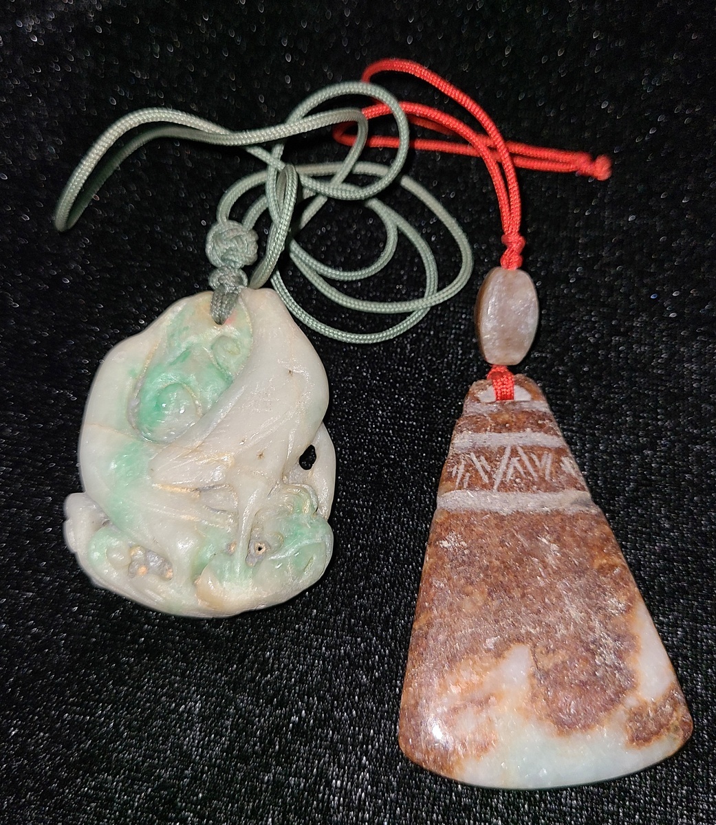 靈芝雙鳥玉吊墜及玉斧吊墜各一件. 尺寸: 約3.5x5cm (x2)
