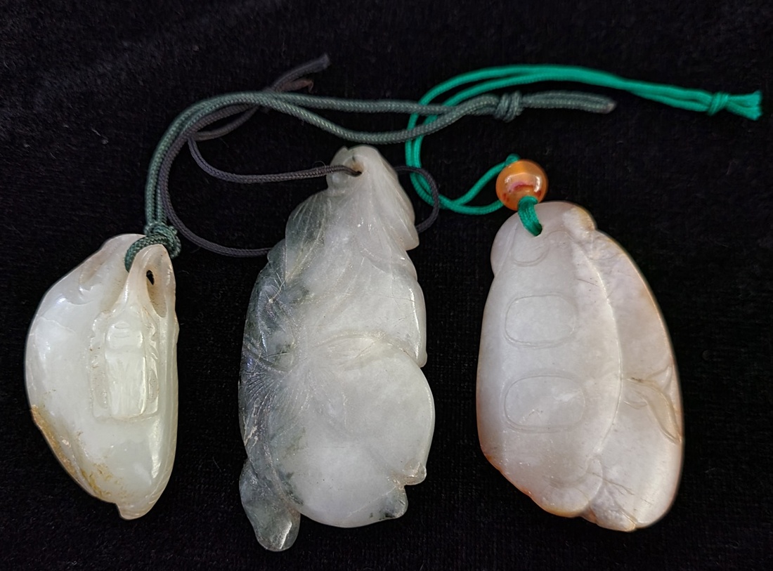 白玉桃吊件, 白玉豆吊件及白玉瓜吊件各一. 尺寸: 最長6.5cm, 最短4.3cm