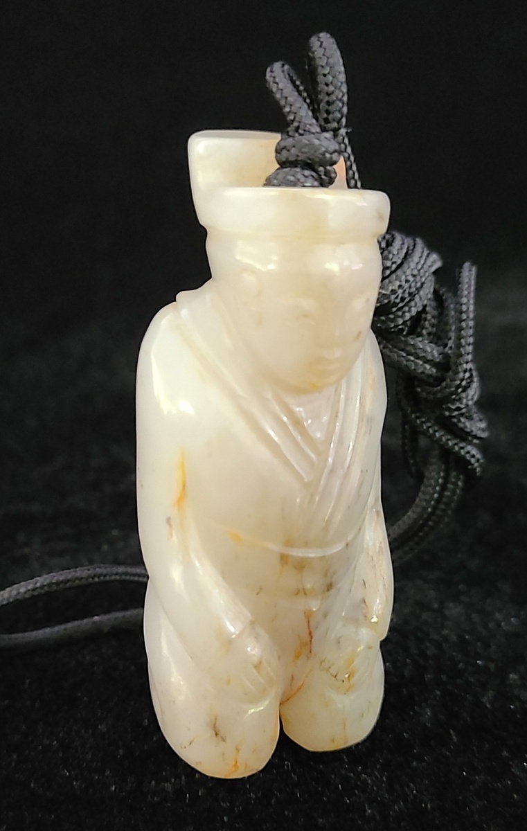 The Kneeling portrait white jade hanging piece. Height 5.5cm