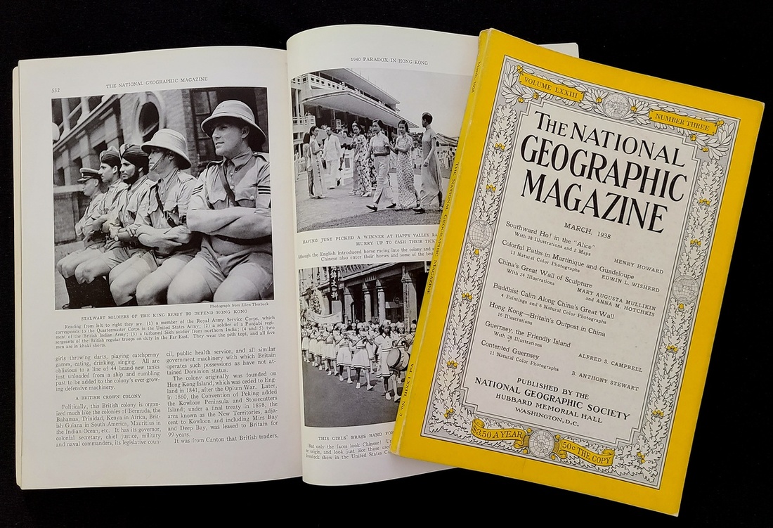 1938年3月号及1940年4月号"The National Geographic Magazine" 國家地理雜誌. 這两期內容有不少篇幅介紹香港.