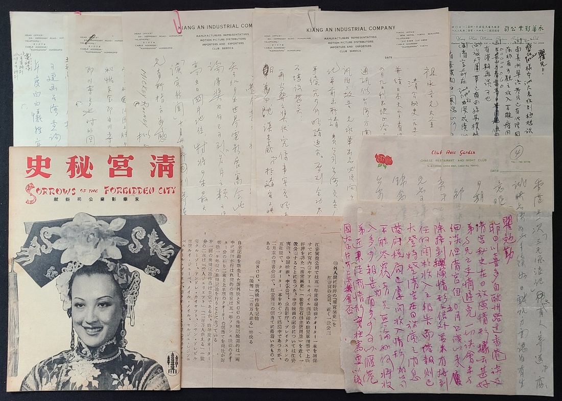 1949 a batch of original shooting records of the film "Sorrows of the Forbidden City" by Hong Kong Yung Hwa Motion Picture Industries Limited, Including a batch of records of actors' costumes and scenes from May 20, 1949 to October 20, 1949; A register prepared by the Costume, Prop and Door and Window Office; A set of correspondence between Li Zuyong, the producer of "Sorrows of the Forbidden City", and Japanese agents, and mentioned that the Japanese emperor praised it after watching it; "Sorrows of the Forbidden City" movie episode lyrics and a special issue of "Sorrows of the Forbidden City". This is the most rare source material for studying the history of Hong Kong movies in the early years.