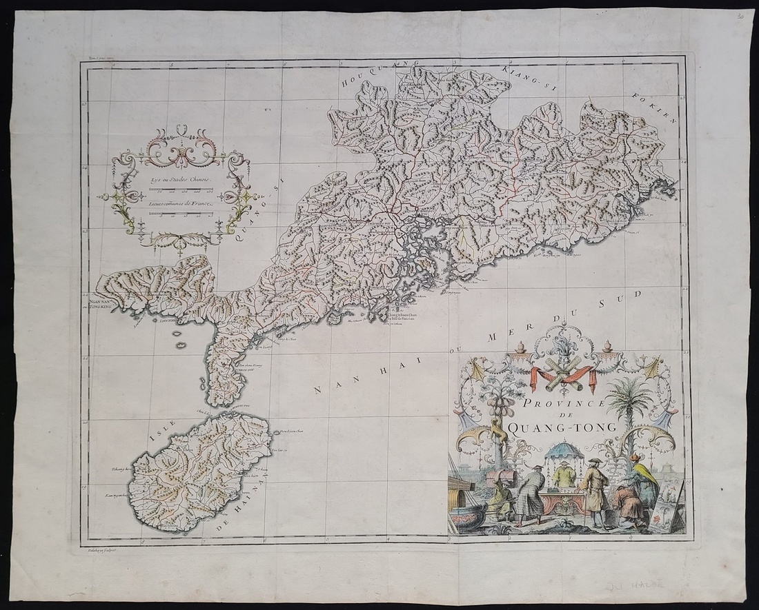 1735 "Province de Quang-Tong". Printed in Paris. Unmounted. Cartographer: du HALDE, Jean Baptiste. Coloured, copperplate engraving. Image size: 21" x 16.5". A bit grubby; Certificate of Authenticity issued by James Douthwaite.