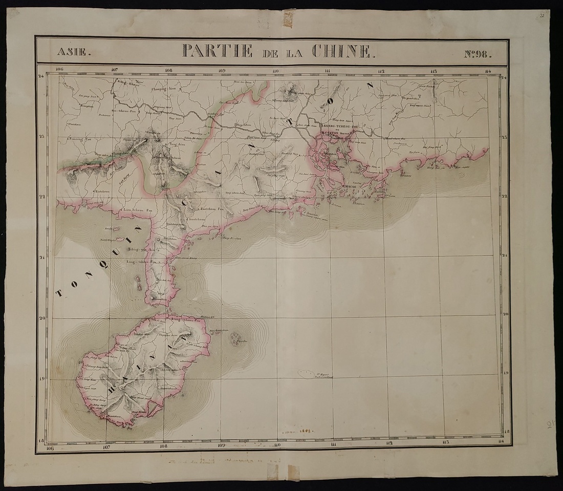 1827 "Partie de la Chine". Unmounted. Cartographer: VANDERMAELEN, Philippe. Edge coloured, copper engraving. Image size: 21" x 18". Some slight foxing.
