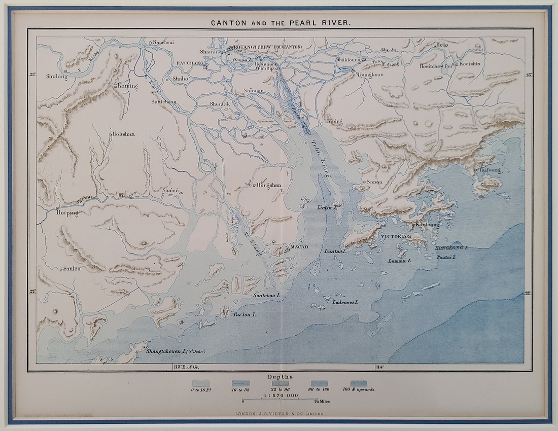 1850 "Canton and the Pearl River" Published by J.s. Virtue & Co. Limited, London. Cartographer: VIRTUE, James. Coloured, clean and fresh. Mounted. Image size: 12" x 9".