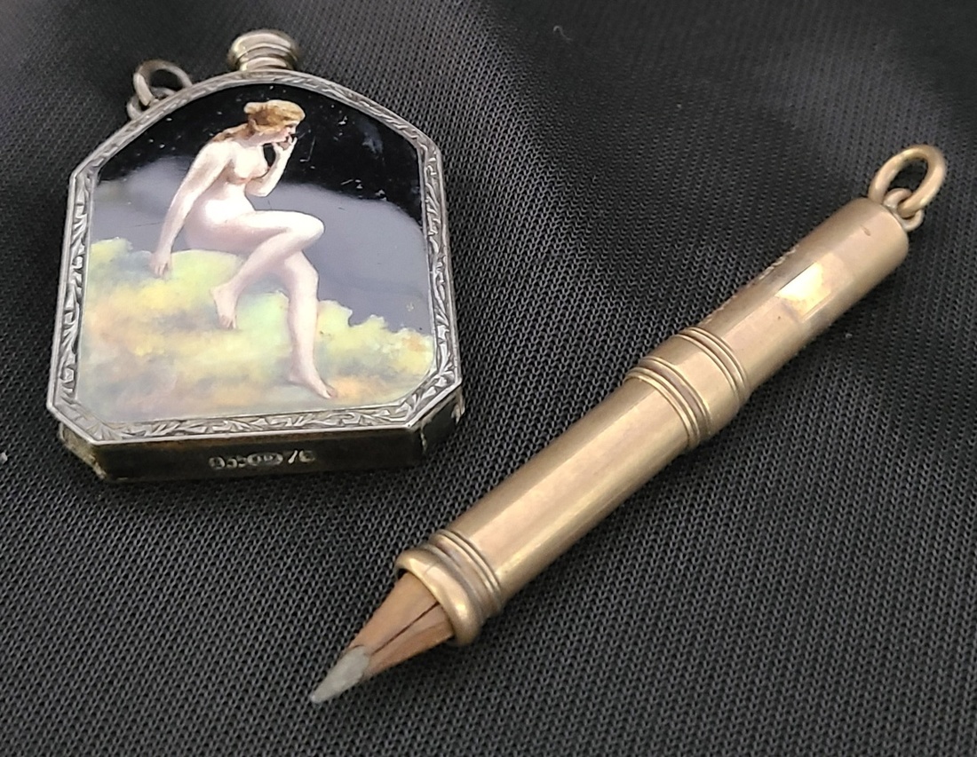 1900年代古董銅殼鉛筆及法國彩繪小銀瓶各一件.