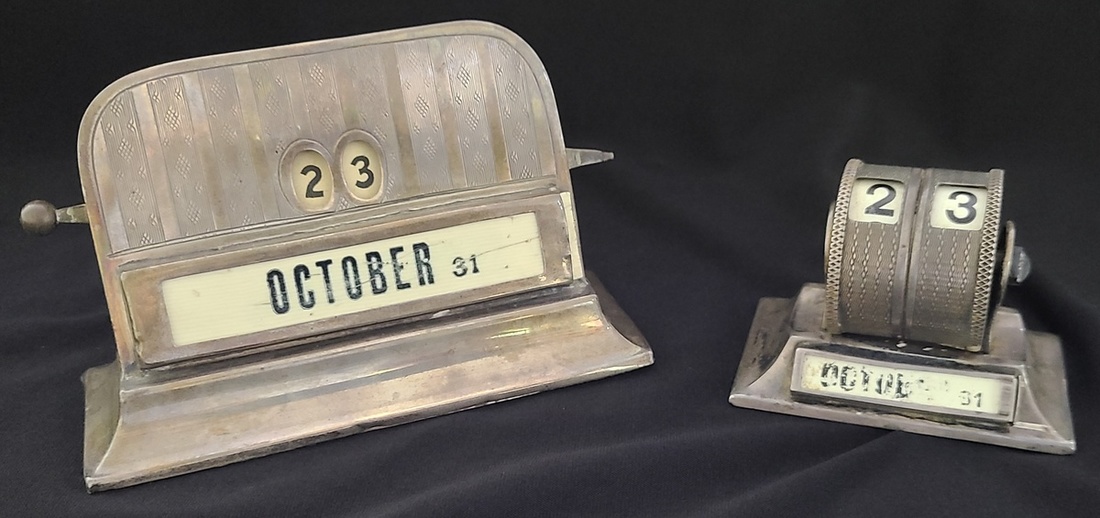 1920-1940年代歐洲銀製座檯日曆两件, 日曆上均有hallmark.