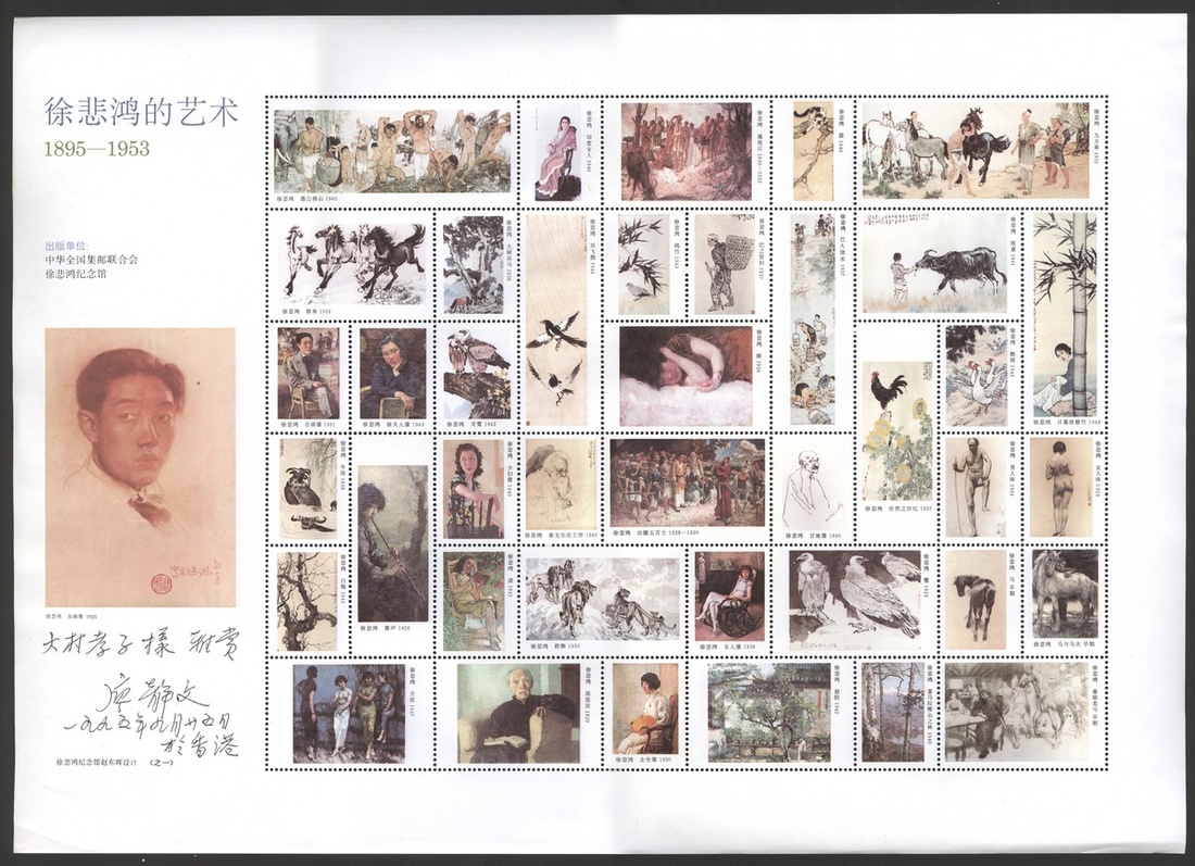 1995 Xu Beihong's Art 1895-1953 A commemorative art print, the lower left has the handwriting of Xu Beihong's widow, Liao Jingwen, signed and presented to a Japanese friend on September 25, 1995 in Hong Kong. Print size: 30x42cm
