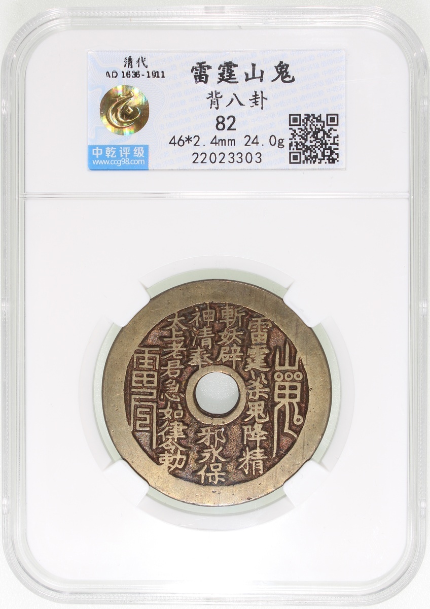 蘇爐山鬼雷霆咒花錢,背八卦,清朝(公元1644–1911),46*2.4mm,重24.0g,中乾82。品相極美,好品。
