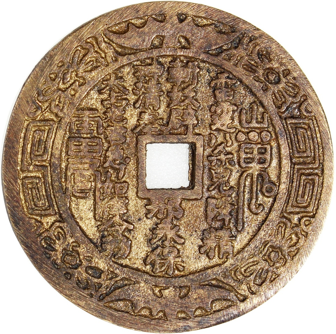 China: Qing Dynasty (1644-1911 CE), coin-like charm with square hole, Yunnan mint production, obverse inscribed Taoist incantation, reverse inscribed Bagua signs and their corresponding characters, 37.8*1.5mm, 11.8g.