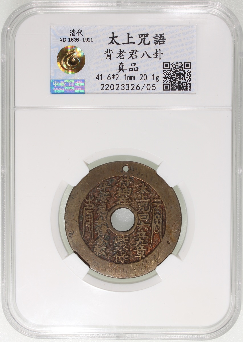 太上咒圓穿花錢,背老君八卦,清朝(公元1644–1911),41.6*2.1mm,重20.1g,中乾真品。