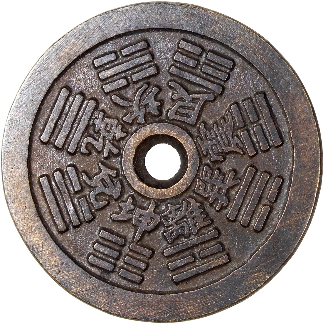 China: Qing Dynasty (1644-1911 CE), coin-shaped charm with round central hole, obverse inscribed 'Xuan tian shang di', reverse showing Bagua with corresponding characters, 48.9*2.1mm, 25.8g.
