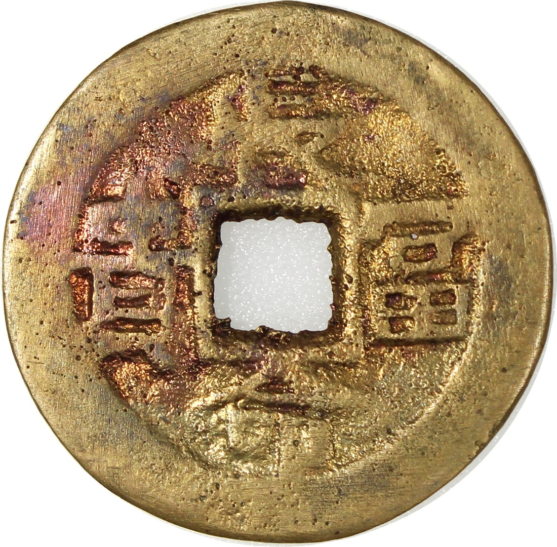 家宅平安方孔花錢,背八卦,清朝(公元1644–1911),30.2*1.6mm,重7.4g。