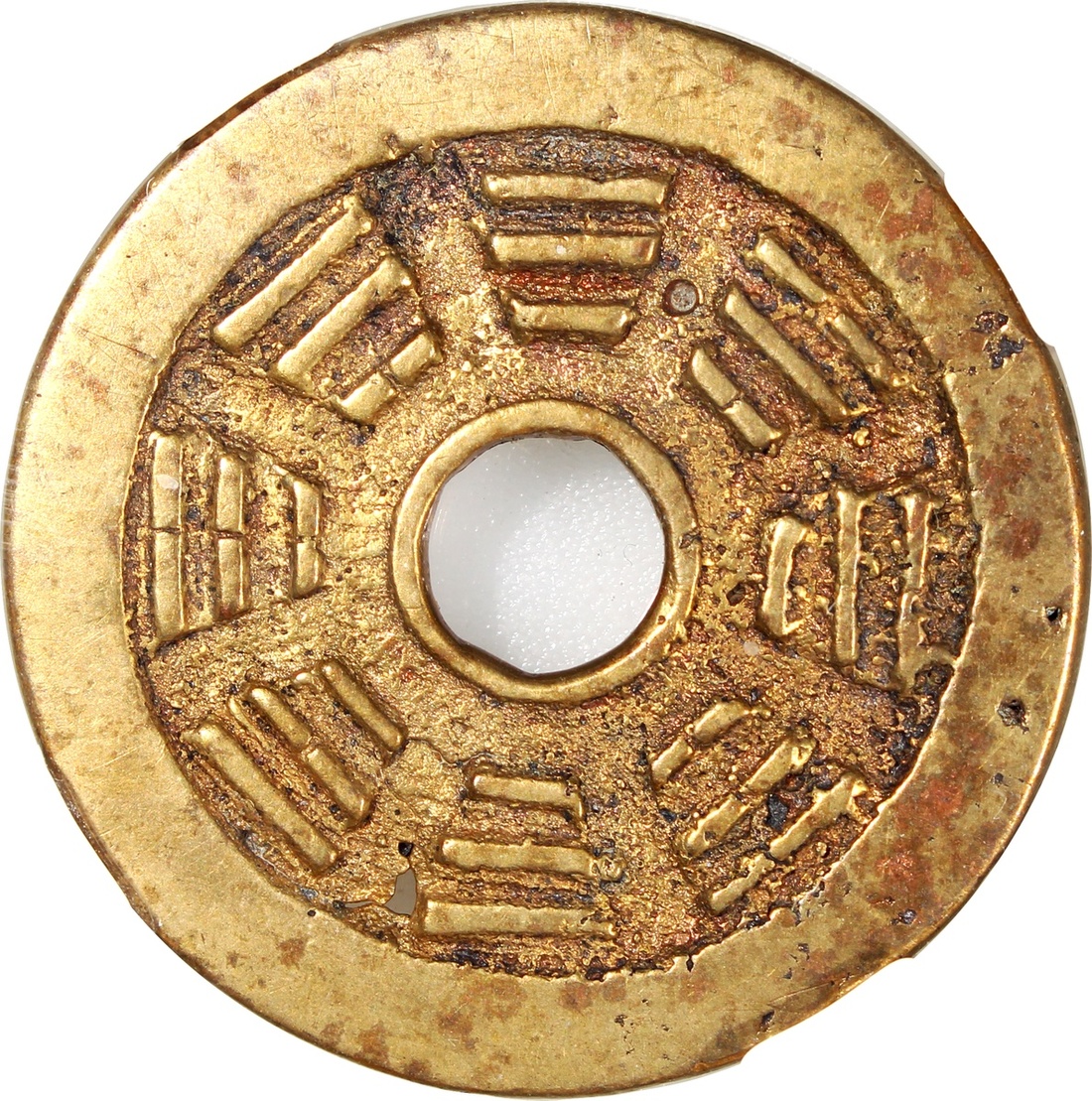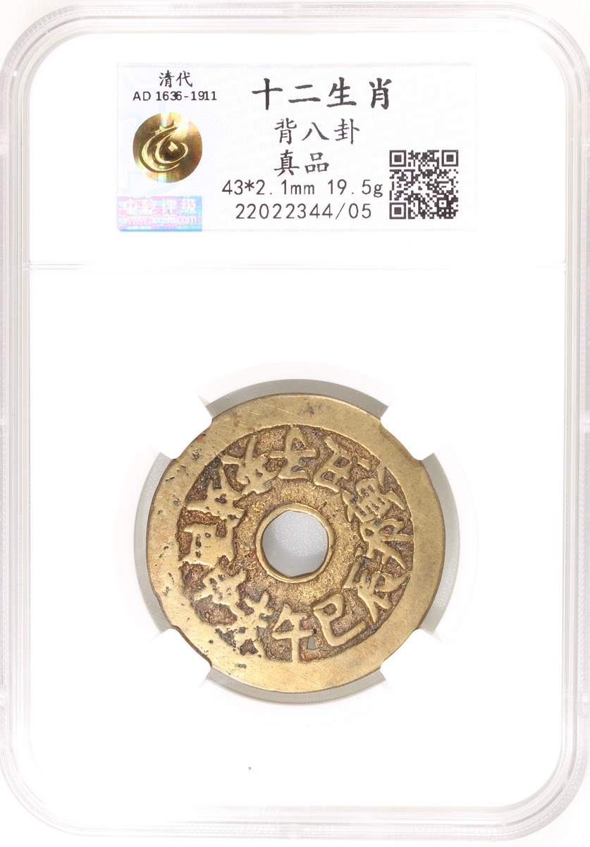 十二地支背八卦圓穿花錢,清朝(公元1644–1911),43*2.1mm,重19.5g,中乾真品。