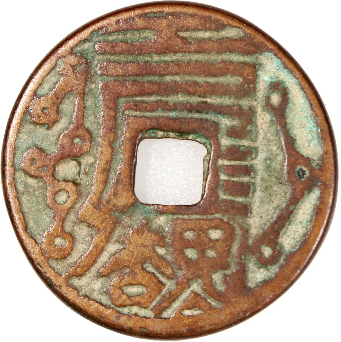 戌狗方穿花錢,背符,明清(公元1368–1911)時期,21.8*1.4mm,重4.0g。