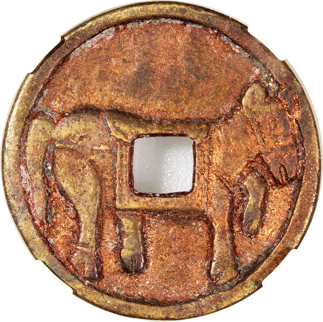 China: Song-Yuan Dynasty (960-1368 CE), coin-shaped charm with square central hole, obverse inscribed 'Bai yi', reverse showing horse, 33.9*2.7mm, 11.9g, Zhong Qian 82, labelled as Neighbouring countries. Very fine.